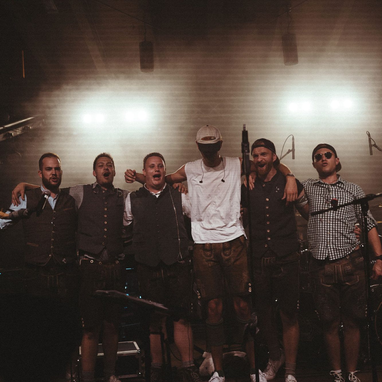 Wir treten ausschließlich auf Bühnen mit professioneller Ton- & Lichttechnik auf.